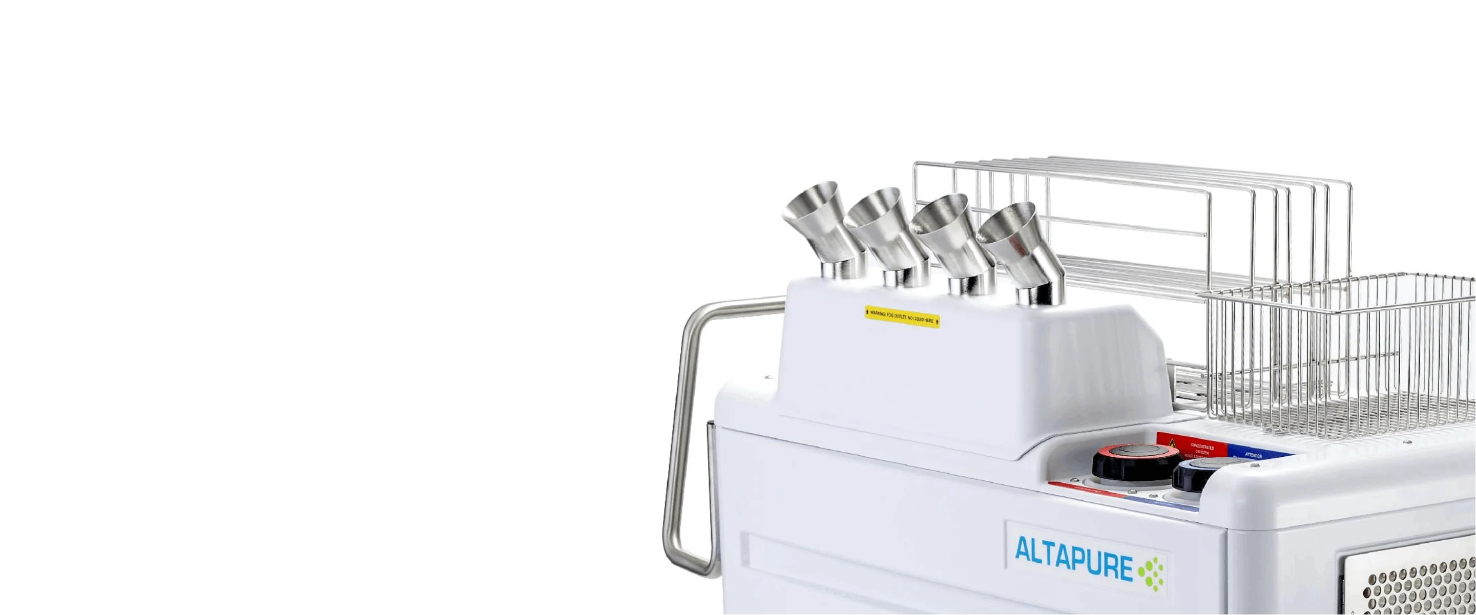 Altapure’s patented ultrasonic platform produces the dispersal of a dense cloud of sub-micron droplets of antibacterial and sporicidal agents for multiple anti-microbial sanitation applications.