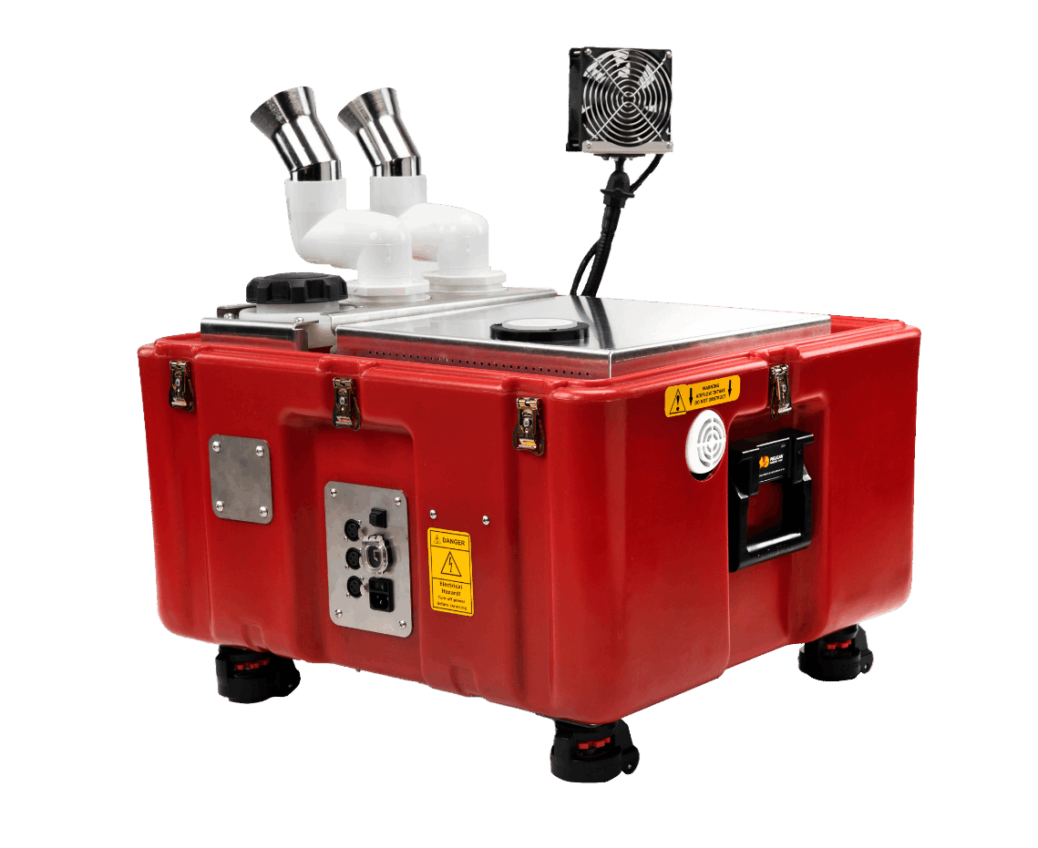 The AP-4 ™ is a fully automated “one touch deploy ™” technology. The single compact unit, includes an effective vapor removal system that is built into the same housing as the aerosol generator, and is easily transported and setup by only one individual.